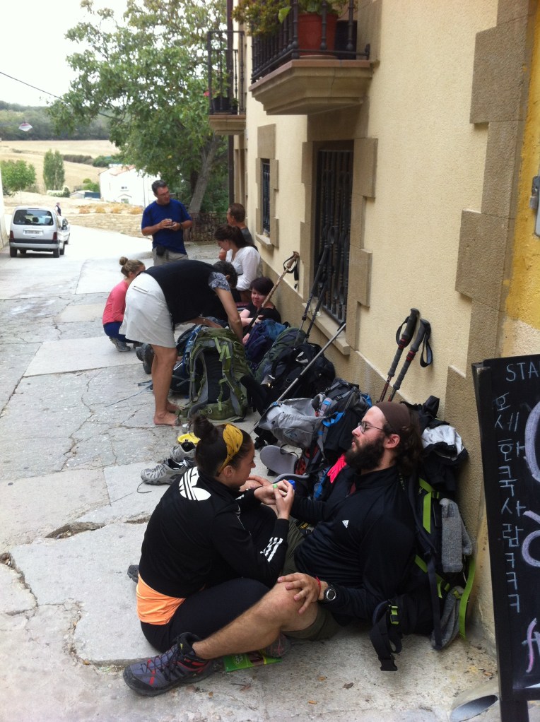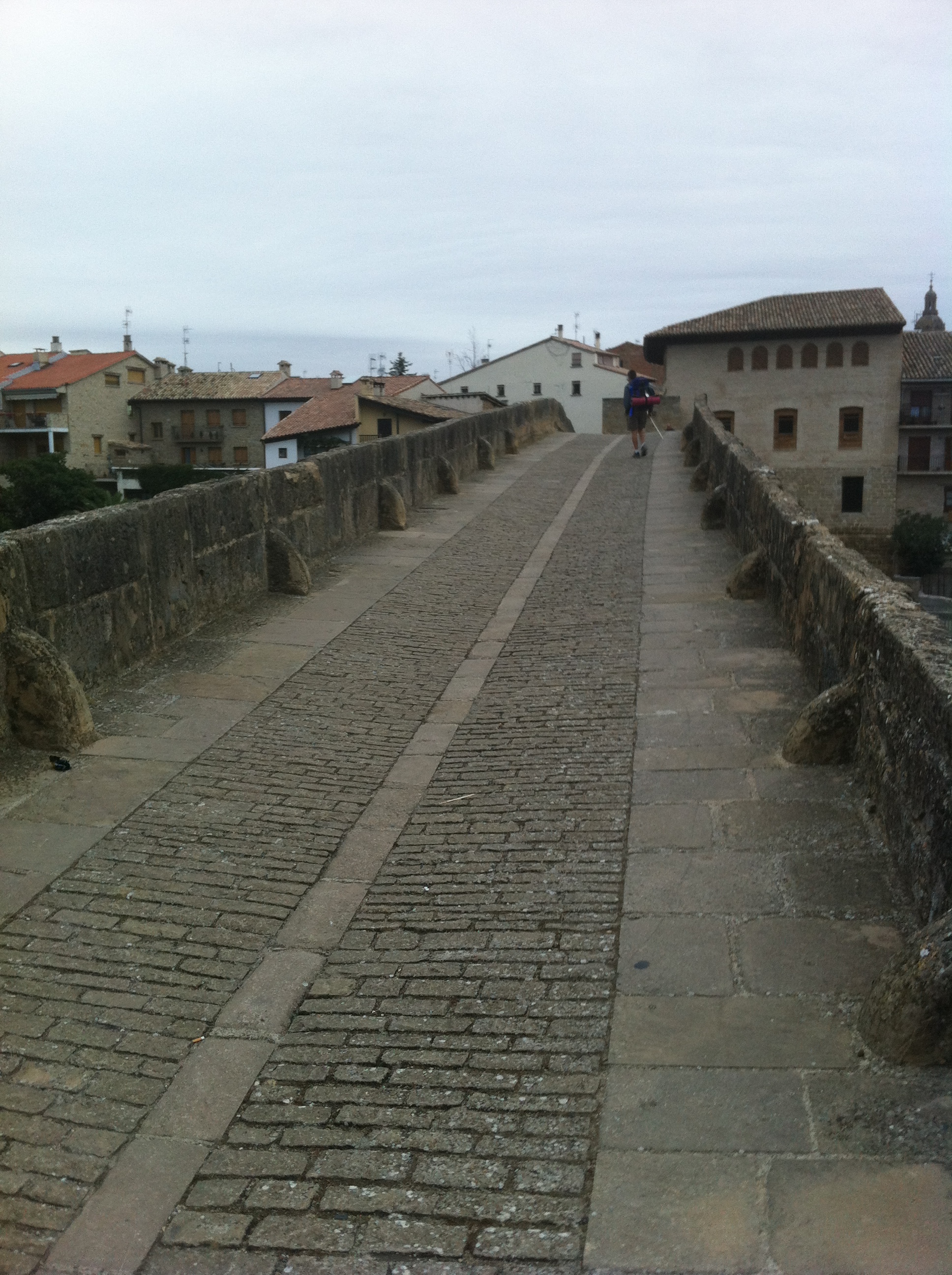 Just docked in Estella after another pleasant day walking through rolling countryside passing lots of vineyards , nut and fig trees . The figs are just ripening and we ate a few as we ambled along. I walked at various stages with 3 Aussie girls and a Conor from Crossmolina in Co Mayo , who now lives in Southern Spain.They have been walking together for the last 5 days. We had a little sing along the way today , you might have guessed , ” I would walk 500 miles “. Conor set out from Le Puy in Central France a month ago and has done 800km up to now. He loved the French section and has given me ideas about doing that in the future. I also walked a bit with Martha , a nurse from North Carolina who is heavily involved in the Anglican Church and spent six years working in Rwanda. The last bit I walked with a couple who live in a part of Germany that was in the GDR before the Berlin Wall came down. One of the real pleasures of The Camino is in the walking and talking with so many interesting people from all over the world.