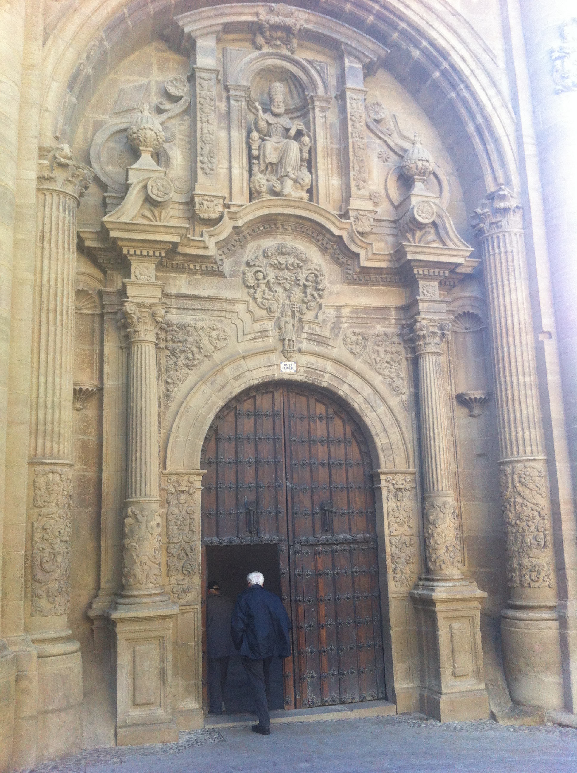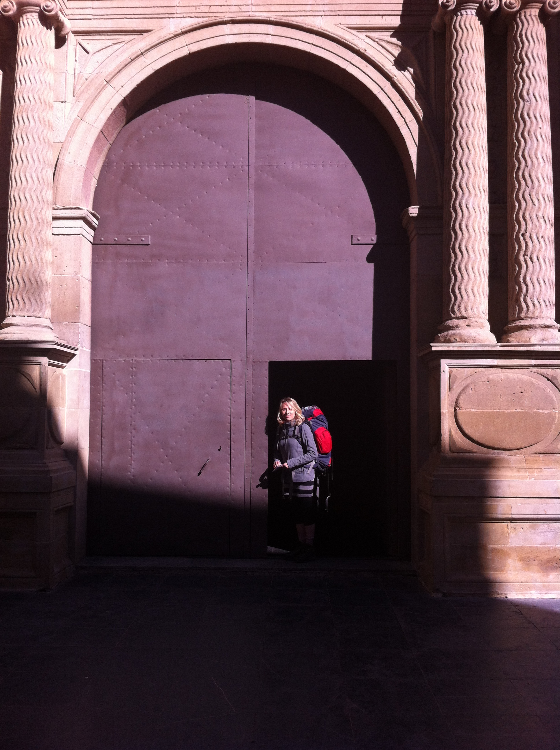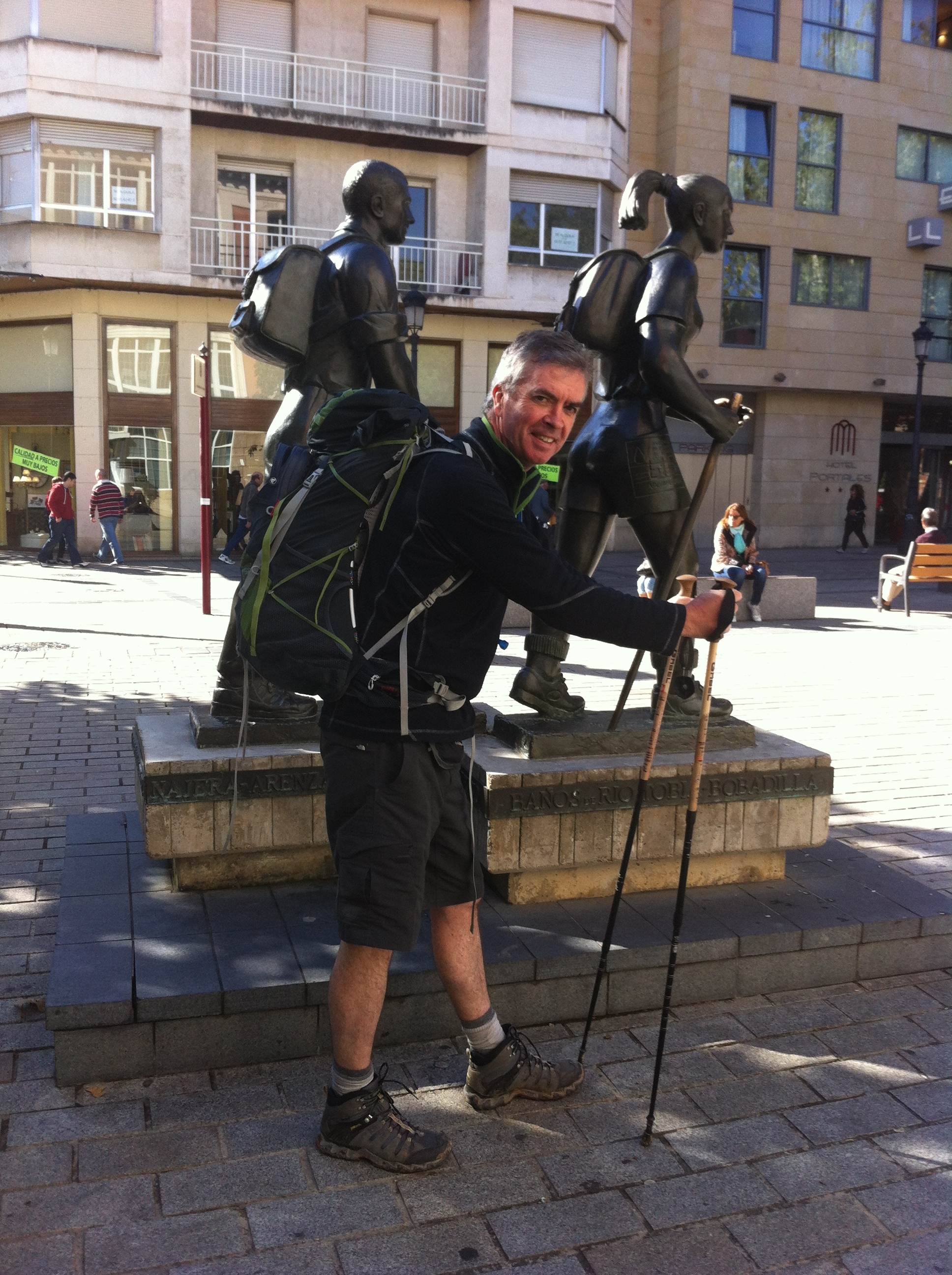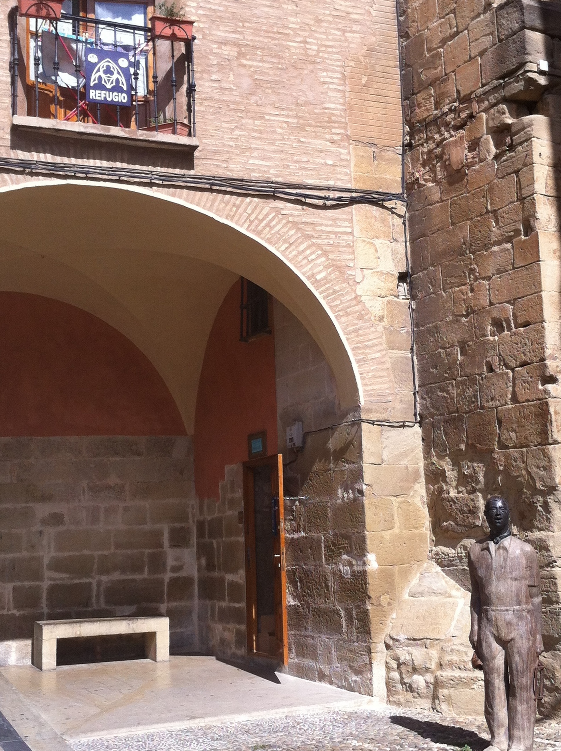 As I entered the city I bumped into Jolanta , the Polish lady who’d complimented me on my snoring skills back in Estella. We walked on together visiting Iglesia Santiago and taking a few photos. I’ve posted a few including one of the impressive facade where you can see , right at the top , a statue of Santiago riding his horse.