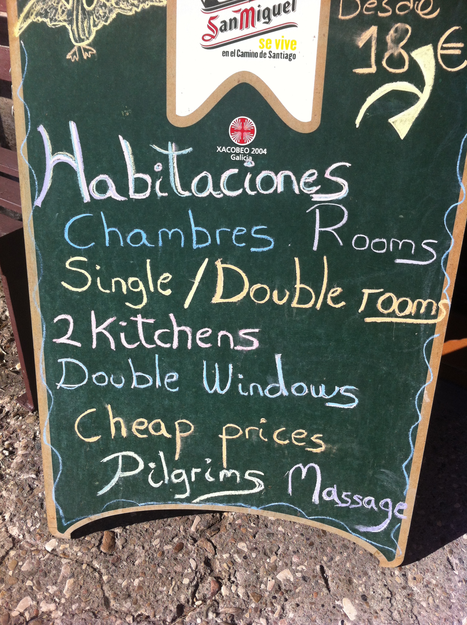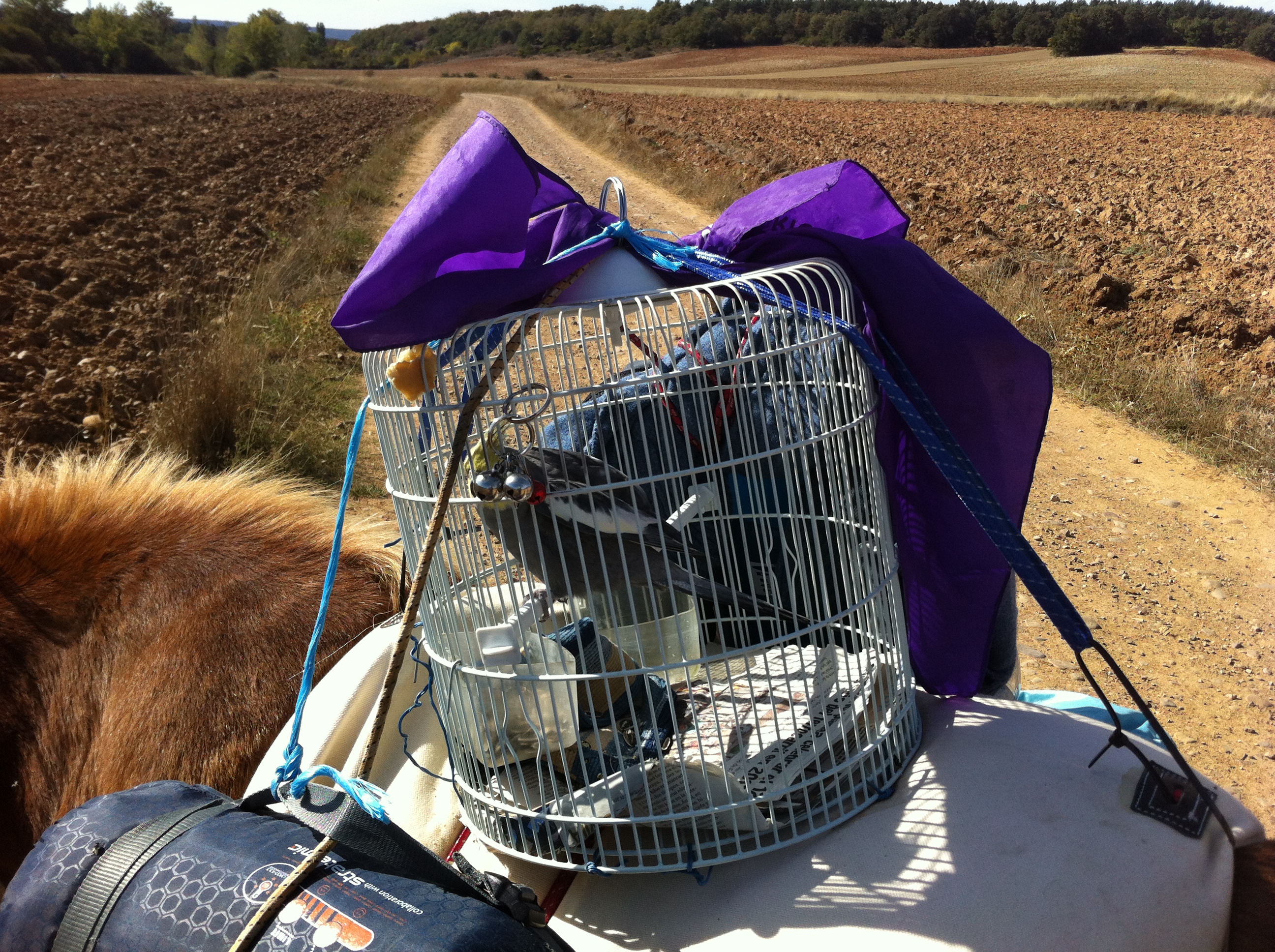 Around Midday I came upon Sacha and Beth having a pathside picnic and they kindly invited me to join them. Turns out Beth is a paediatrician back home in San Francisco so we had a good chat about the way the health services are run in the UK and US. We walked on together and met our first Pilgrim walking with a donkey. This young Swiss lad had walked to Santiago ,with his donkey , all the way from Basle and was now walking back home ! It was going to take him over a year to do this. Not long afterwards we met another Pilgrim walking with equine company. He was a Spanish guy who was walking with his ” family ” , a Shetland Pony named ” Pearlita ” and a parrot named ” China “. The parrot was travelling in a cage on the donkey’s back. On one of the photos you can also see a brolly sticking out of one of the donkey’s packs. There is no shortage of characters out here on The Camino.