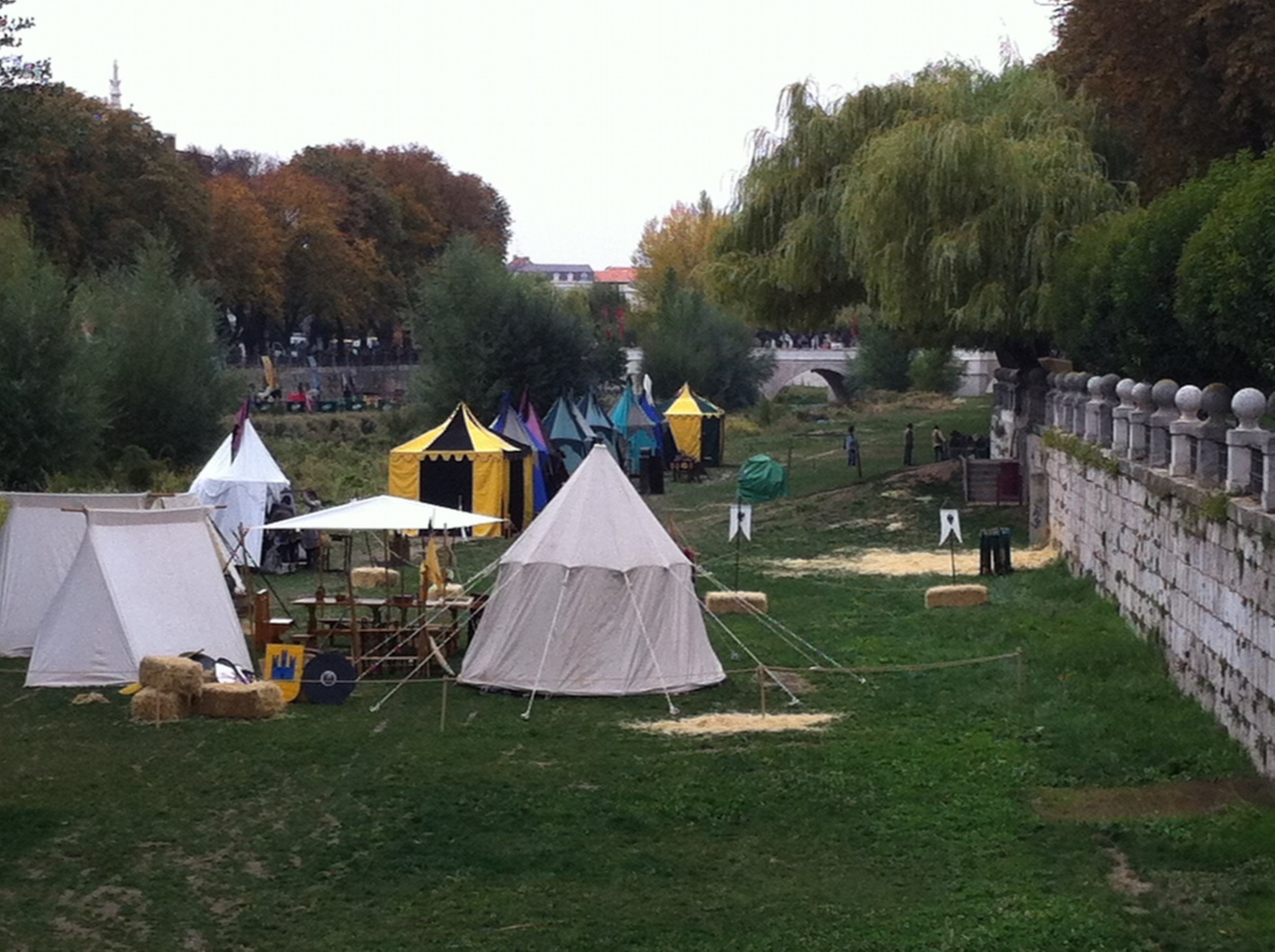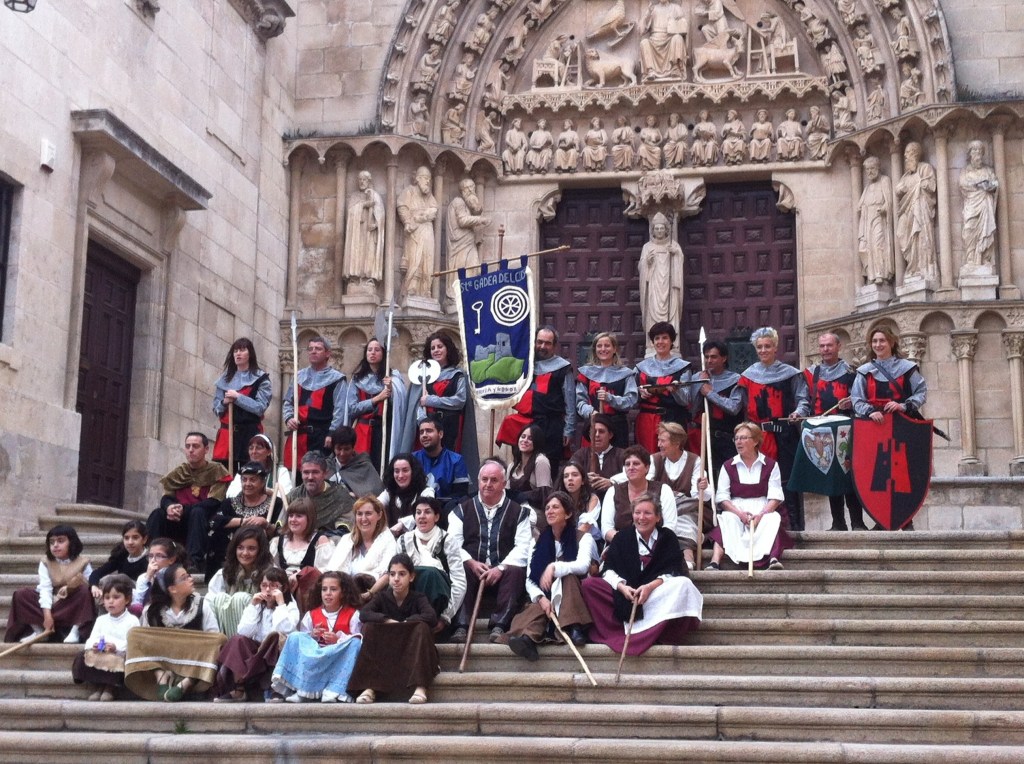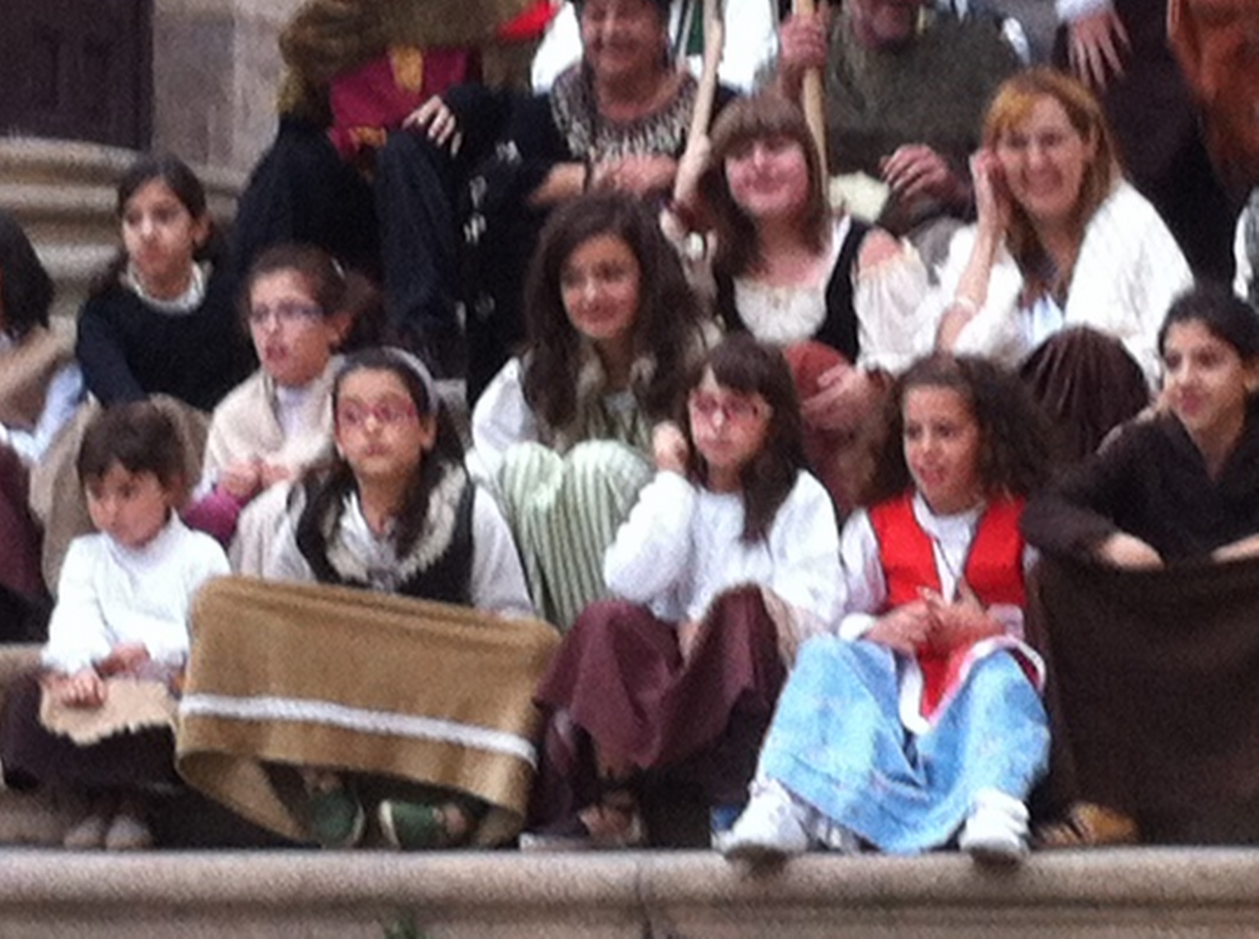 The festivities seemed to centre on El Cid ( who was born near the city ) and there was a medieval theme to it all. Every other person seemed to be dressed in medieval costume , the children too. There was a concert of classical and regional music outside the Cathedral in the morning. Throughout the day there were ” knights” jousting and stick fighting down by the river. There were costumed basket weavers , blacksmiths , puppet makers and others. A bunch of musicians wandered the city all day playing the Spanish version of the bagpipes and drums . All in all it provided a terrific atmosphere and the place was teeming with visitors. In the evening there was a great torchlit procession of all the costumed people and the horses through the city.