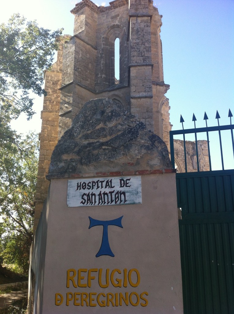 I pushed on after a stop for breakfast at 10.30am and reached Castrojeriz at 1.00pm. This would normally be the stop over point for this Camino stage according to ” The Bible According to John Brierley ” , the guide book that most of us are using. However I felt good and decided to walk another 10km or so to the small village of Itero de la Vega. I stopped for lunch at a shelter/viewpoint after a steep climb and met a guy from Westport , County Mayo who was cycling The Camino and had hooked up with a couple of Aussies doing the same thing ( see photo ). I reached my destination of Itero de la Vega around 4.00pm and treated myself to a couple of beers as the sun had been pretty intense all afternoon. I was the only Pilgrim booked into the small Refugio ( this village is ” in between ” the stages as suggested in the guides ) until an Irish guy named Gus turned up later. He had an accent reminiscent of Roy Keane and , sure enough , he hailed from West Cork.