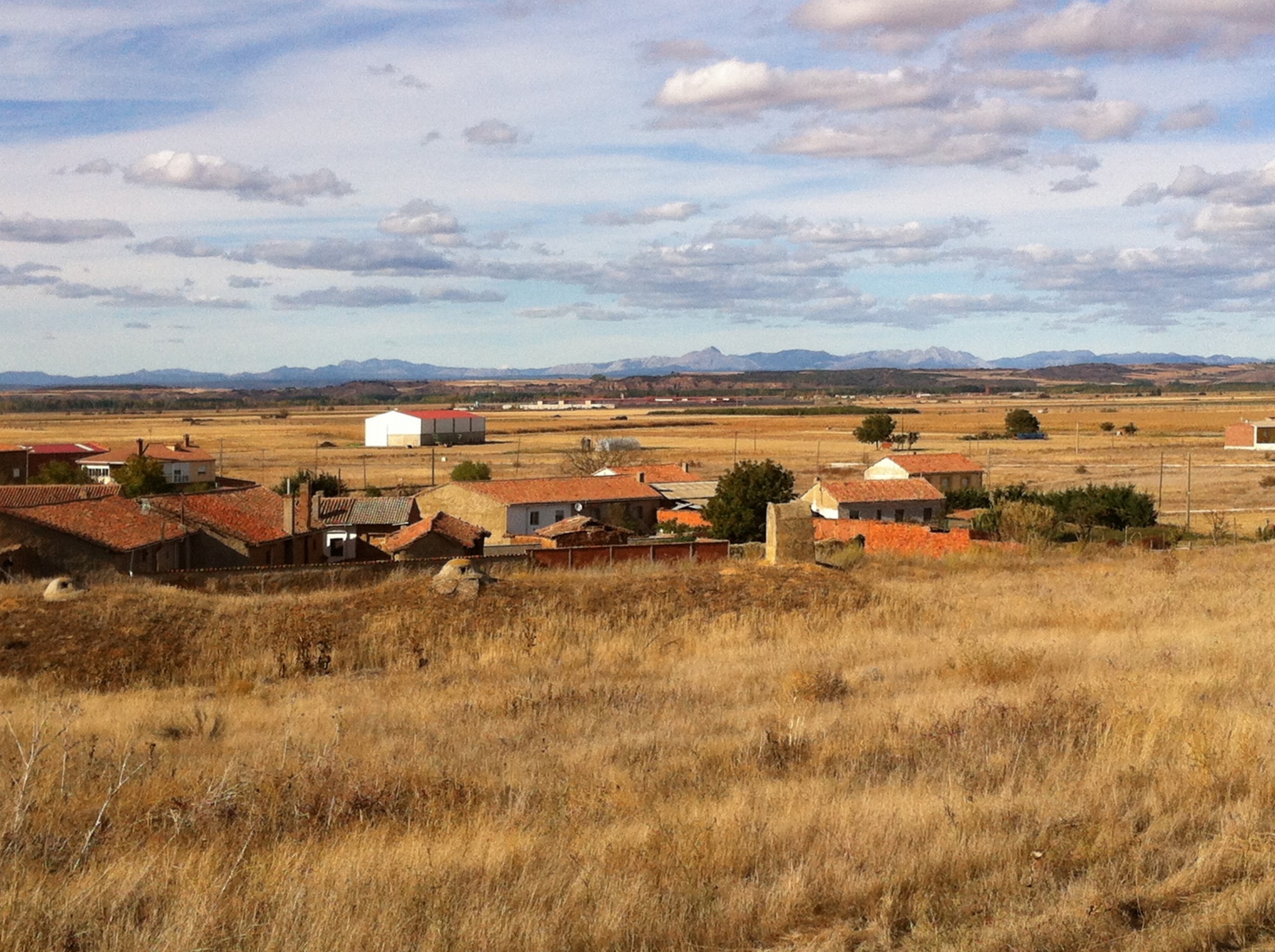 Approaching Reliegos , note ” Hobbit ” houses in foreground