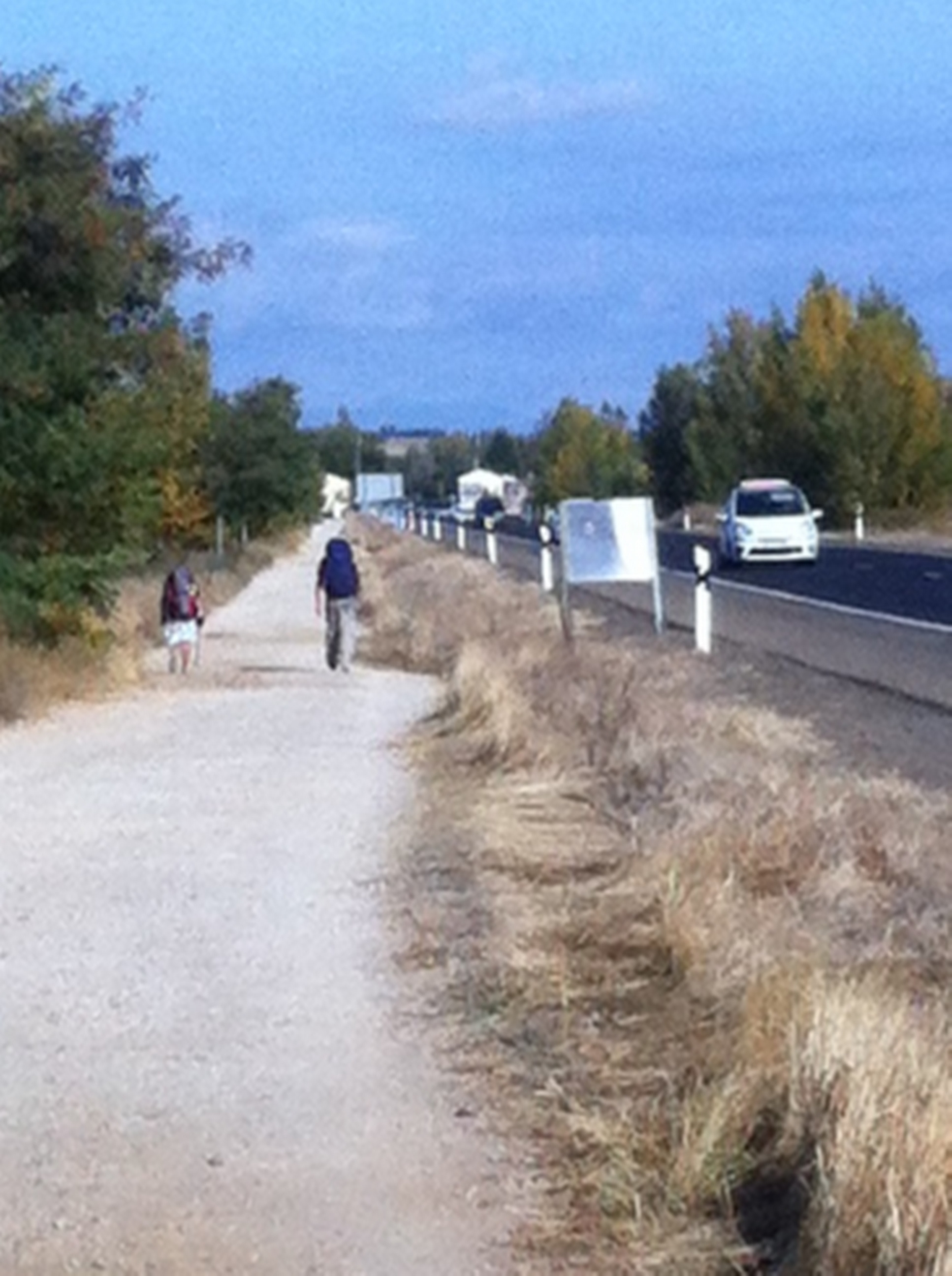 There were only three others in my room last night , a young couple from Chicago and an Italian chap so I had a really good sleep and set off at first light ( now around 8.15am ) towards the small town of Mansilla de las Mulas where I stopped for breakfast with Alain. Alain is a French Canadian I’ve seen intermittently since St Jean. He has been walking now for 9 weeks as he’s another who started at Le Puy. Like Servan and Edith he was extolling the beauties of that part of The Camino.