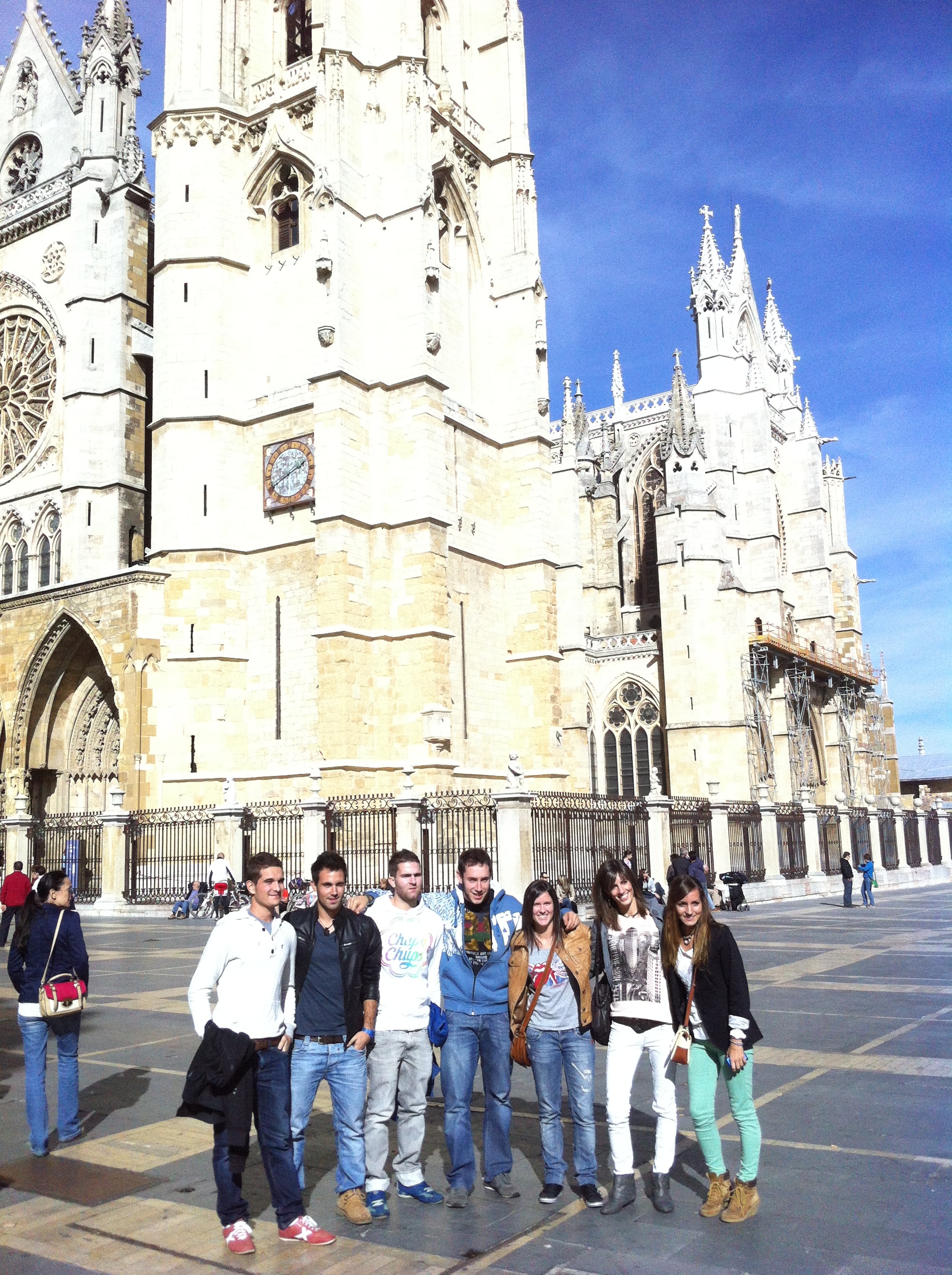 After passing an area where a lot of maize was growing we came to the outskirts of Leon at around 1.30pm and there was then a long drag into the city near a busy main road , not the most scenic part of The Camino. We reached the centre around 3.00pm and paid our 5 euros to book into the Albergue Santa Maria , another place run by Benedictine Nuns. In my experience so far the Nuns have spotlessly clean Refugios and they seem to make a special effort to give the Pilgrims a good experience. We were shown to our bunks which were in a large dormitory containing around 50 bunks which were men only as the sexes were separated again . I knew what that meant ….
