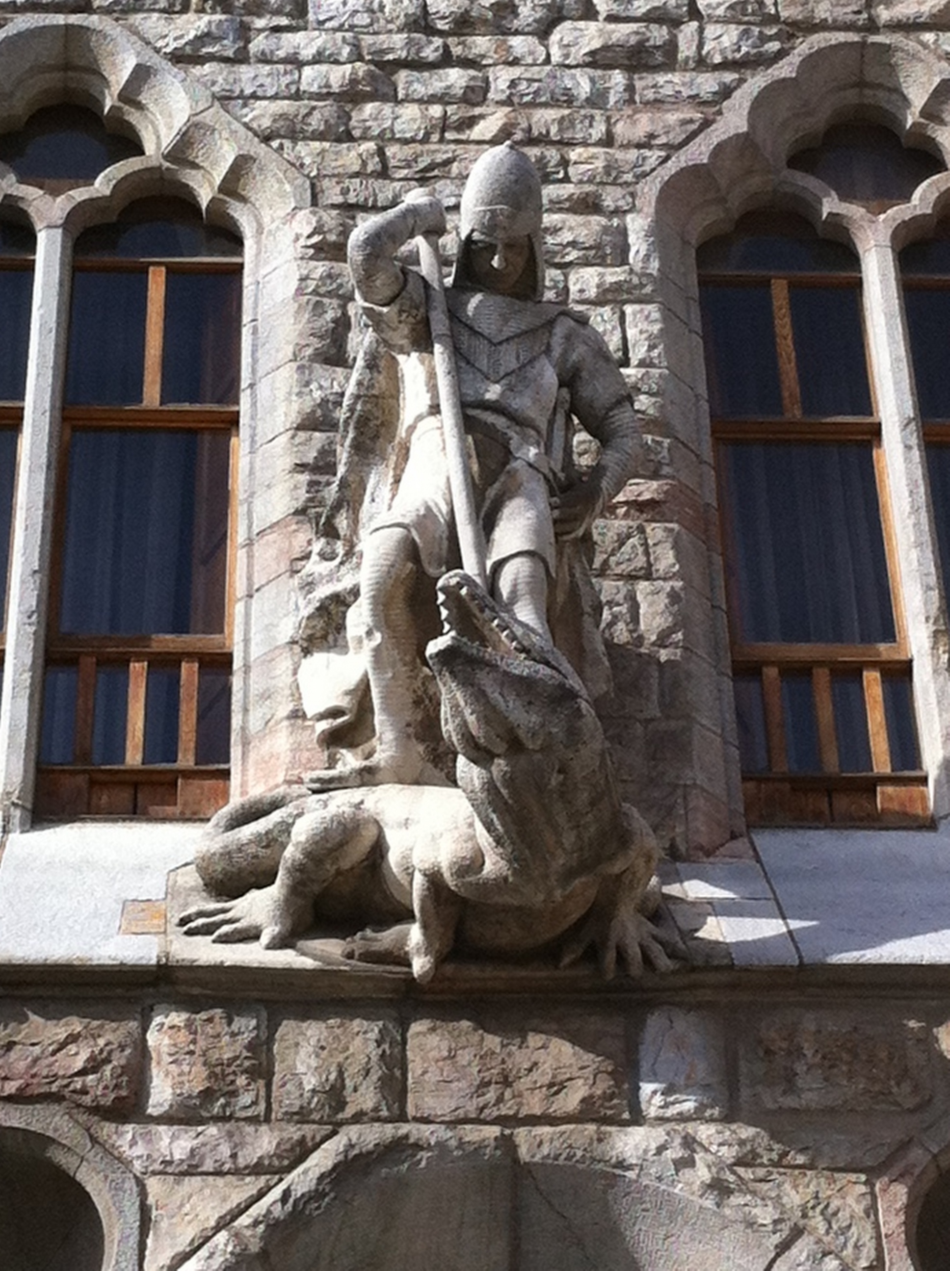 I also had a look at a neo-Gothic building designed by Gaudi , the Casa de Botines , originally designed as a house , now owned by a Spanish Bank. I’ve posted a few pictures of it , including one of a sculpture of St George slaying the dragon situated over the front door.