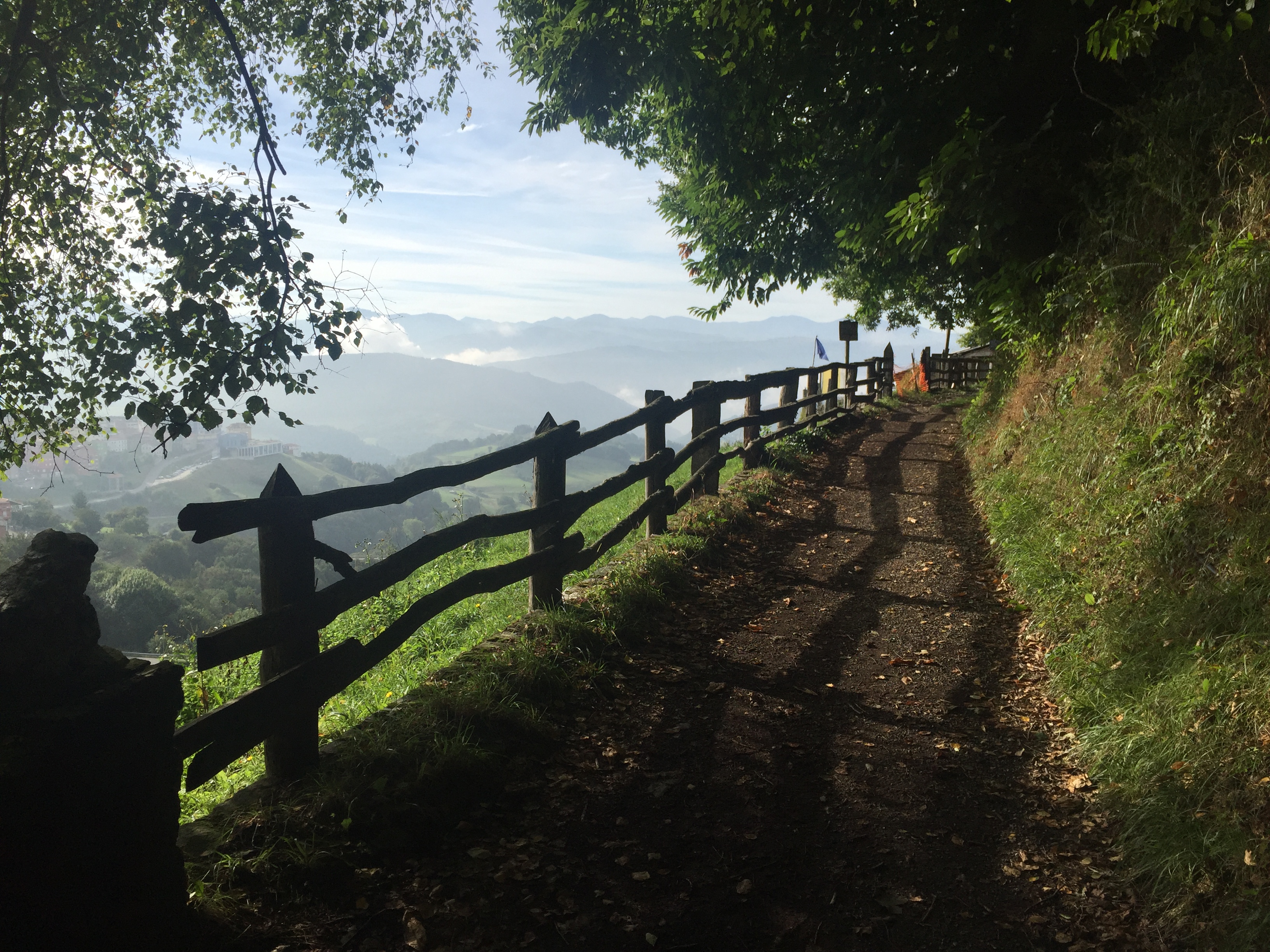We’ve walked through medium sized hill country with plenty of wooded sections passing small villages in which there  is often a small Romanesque church , a few cats and the sound of cockerels crowing. There are loads of apple orchards and fig trees and every house seems to have a vegetable patch growing a variety of things , often including a large area of Kale. Making cider seems to be bit of a religion around here and I have to say it’s really good stuff. They pour the cider into a glass from a height and it fizzes when the stream gushes out. I poured out a glassful from the bottle like this but the bar owner in Salas told me I was doing it incorrectly and was quite insistent I do it the right way. They only pour small amounts into the glass , so called ” culinos ” that must be consumed immediately after it has been poured “so that it doesn’t die ” ( meaning it doesn’t go flat ). By doing this it’s supposed to give it a bolder flavour. Whether ” dead ” or ” alive ” it tasted great to me.